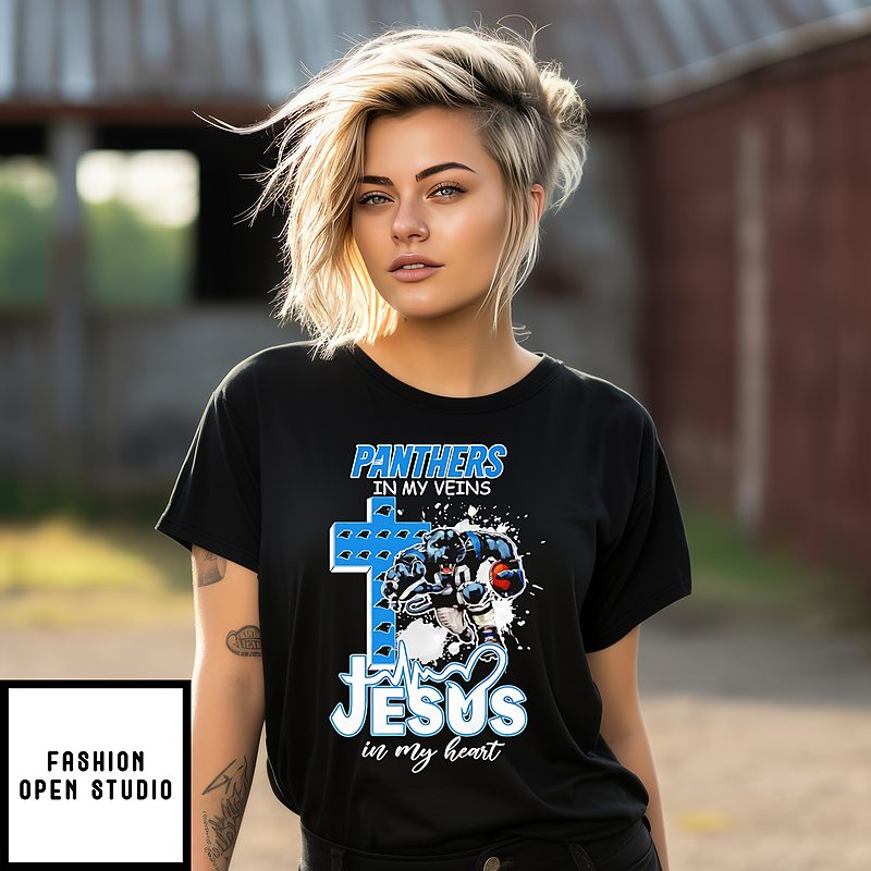 2025 Carolina Panthers In My Veins Jesus In My Heart T-Shirt