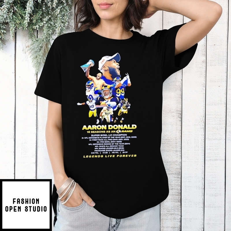Aaron Donald 10 Seasons As An La Rams Legends Live Forever T-Shirt