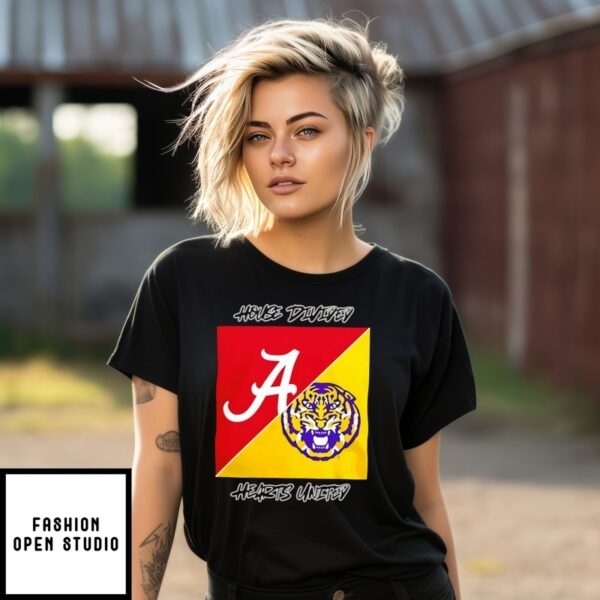 Alabama Vs Lsu College Football House Divided Hearts United T-Shirt