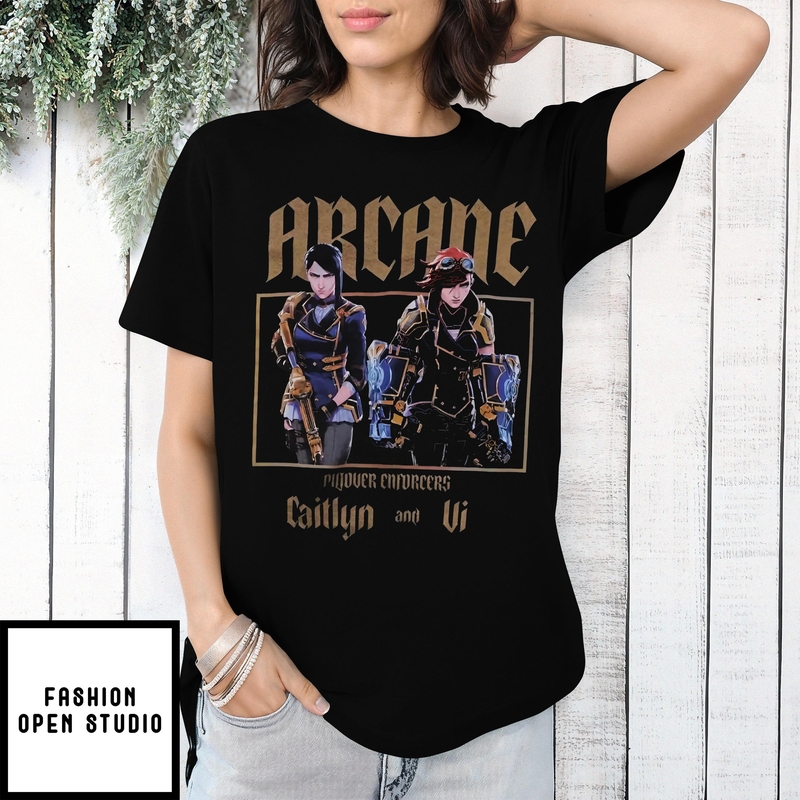 Be the first to review “Arcane Caitlyn And Vi Piltover Enforcers Dark Wash T-Shirt” Cancel reply