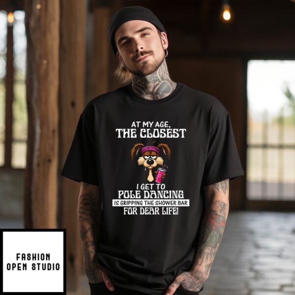 At My Age The Closest I Get To Pole Dancing Is Gripping The Shower Bar T-Shirt