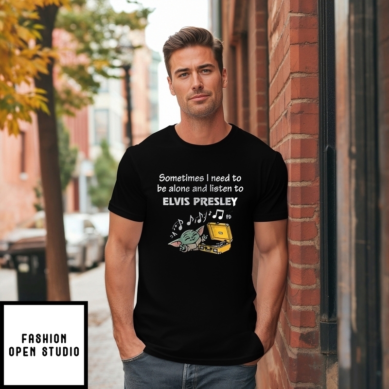 Baby Yoda Sometimes I Need To Be Alone And Listen To Elvs Presleyyy T-Shirt