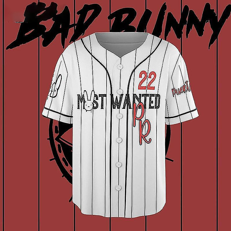Bad Bunny Most Wanted Tour Gift For Fan Baseball Jersey is a bold, game-day ready baseball jersey designed for comfort and standout style. With its classic button-up look and breathable feel, it’s perfect for casual wear, team vibes, or gifting for any baseball fan. Explore our baseball jersey collection and check out the baseball jersey details and size guide below!