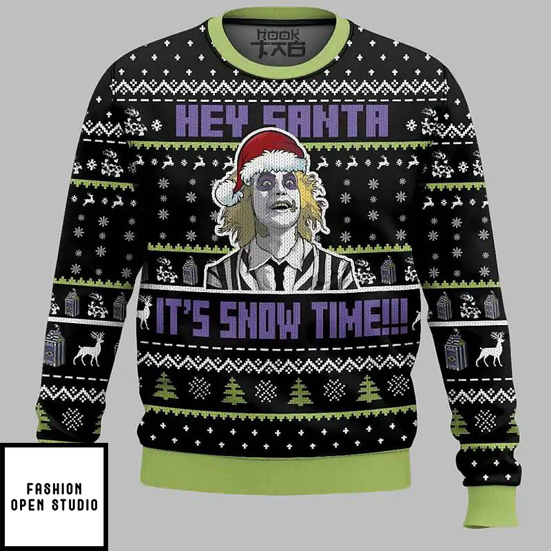 Beetlejuice Hey Santa It’s Snow Time Christmas Ugly Sweater