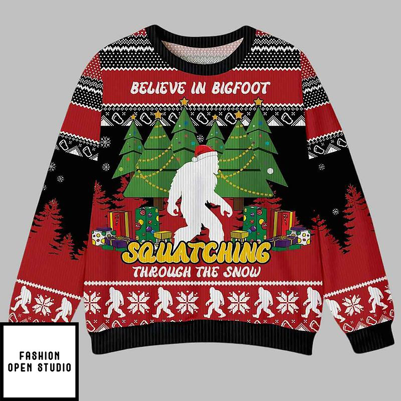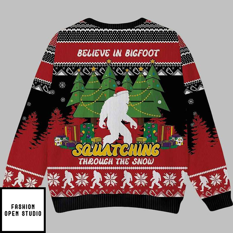Bigfoot Squatching Through The Snow Ugly Christmas Sweater