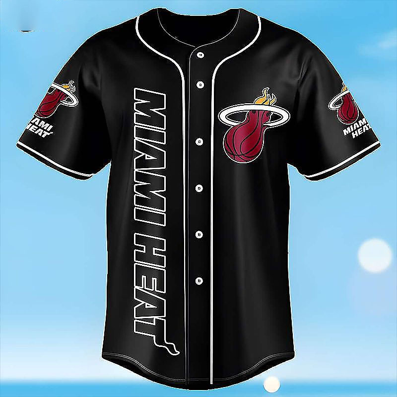 Black NBA Miami Heat Baseball Jersey is a bold, game-day ready baseball jersey designed for comfort and standout style. With its classic button-up look and breathable feel, it’s perfect for casual wear, team vibes, or gifting for any baseball fan. Explore our baseball jersey collection and check out the baseball jersey details and size guide below!