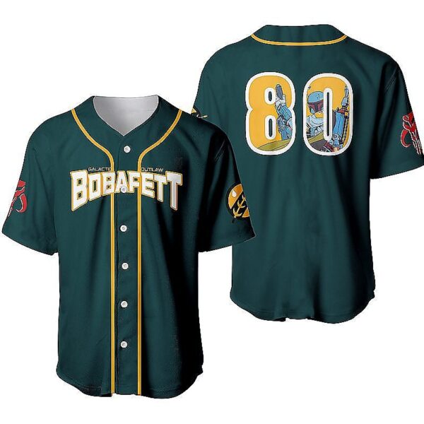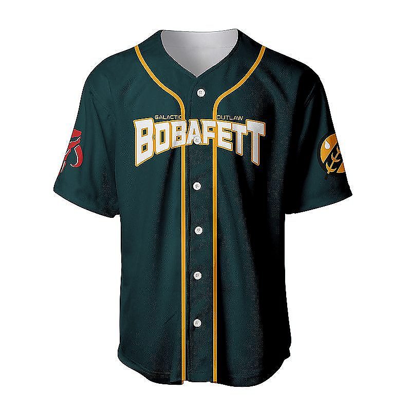 Boba Fett Baseball Jersey is a bold, game-day ready baseball jersey designed for comfort and standout style. With its classic button-up look and breathable feel, it’s perfect for casual wear, team vibes, or gifting for any baseball fan. Explore our baseball jersey collection and check out the baseball jersey details and size guide below!