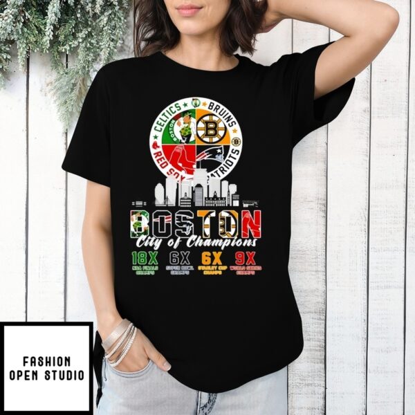 Boston Celtics Bruins Red Sox And Patriots City Of Champions T-Shirt