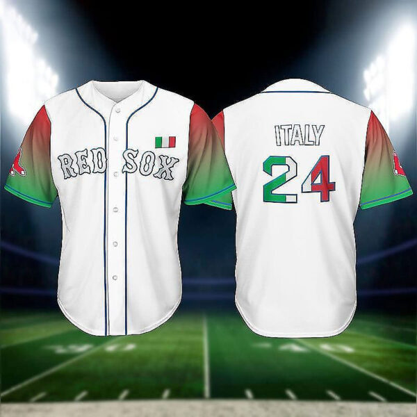 Boston Red Sox Italian Celebration 2024 Gift Baseball Jersey is a bold, game-day ready baseball jersey designed for comfort and standout style. With its classic button-up look and breathable feel, it’s perfect for casual wear, team vibes, or gifting for any baseball fan. Explore our baseball jersey collection and check out the baseball jersey details and size guide below!