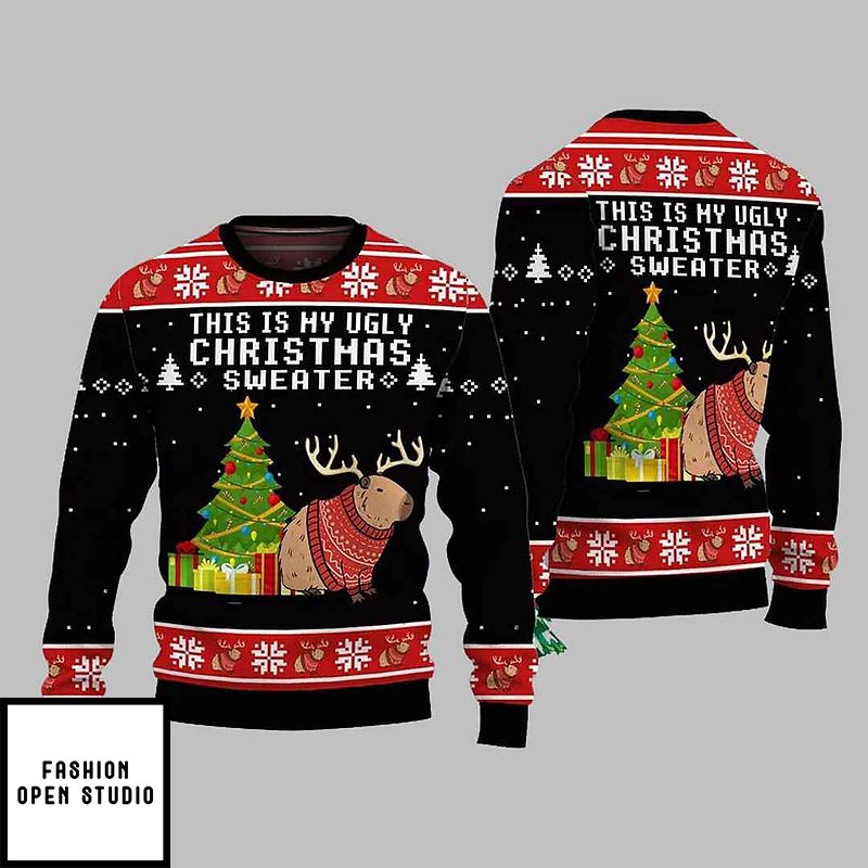 Celebrate the holiday season with Capybara Holiday Ugly Christmas Sweater from our unique ugly sweatshirt collection! This is great for people who struggle to pick between Halloween and Christmas or who like to mix up the holidays. This unique design takes the best parts of both worlds and makes a piece that will get people talking and stand out. Get ready for this masterpiece to turn heads and make people happy!