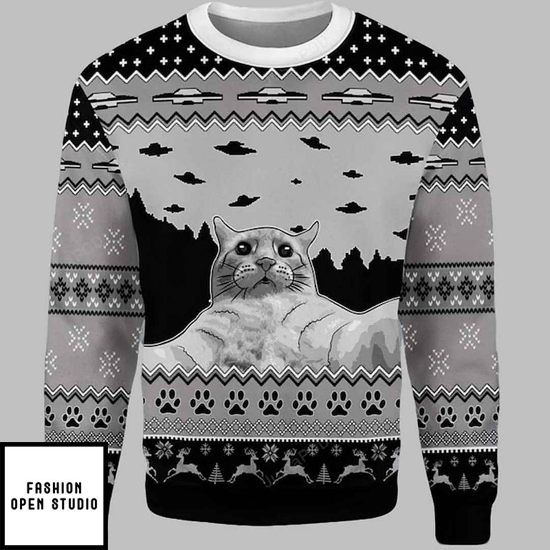 Celebrate the holiday season with Cat Selfie With Ufo Ugly Christmas Sweater from our unique ugly sweatshirt collection! This is great for people who struggle to pick between Halloween and Christmas or who like to mix up the holidays. This unique design takes the best parts of both worlds and makes a piece that will get people talking and stand out. Get ready for this masterpiece to turn heads and make people happy!
