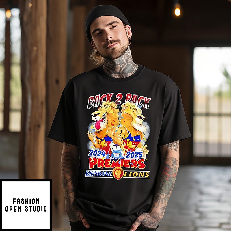 Celebrate Brisbane Lions Back To Back 2025 Premiers Mascot T-Shirt