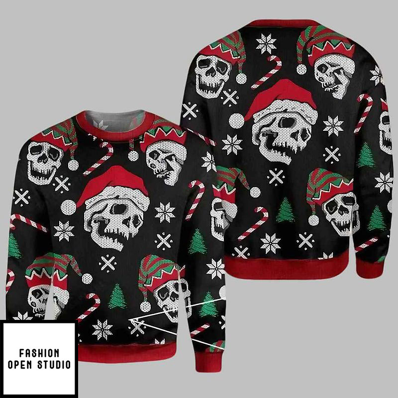 Celebrate the holiday season with Christmas Skull Santa Ugly Christmas Sweater from our unique ugly sweatshirt collection! This is great for people who struggle to pick between Halloween and Christmas or who like to mix up the holidays. This unique design takes the best parts of both worlds and makes a piece that will get people talking and stand out. Get ready for this masterpiece to turn heads and make people happy!