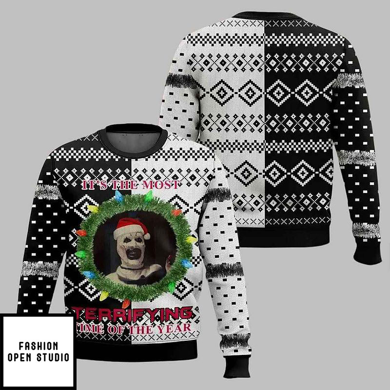 Celebrate the holiday season with Christmas Terrifier Santa Hat Ugly Christmas Sweater from our unique ugly sweatshirt collection! This is great for people who struggle to pick between Halloween and Christmas or who like to mix up the holidays. This unique design takes the best parts of both worlds and makes a piece that will get people talking and stand out. Get ready for this masterpiece to turn heads and make people happy!