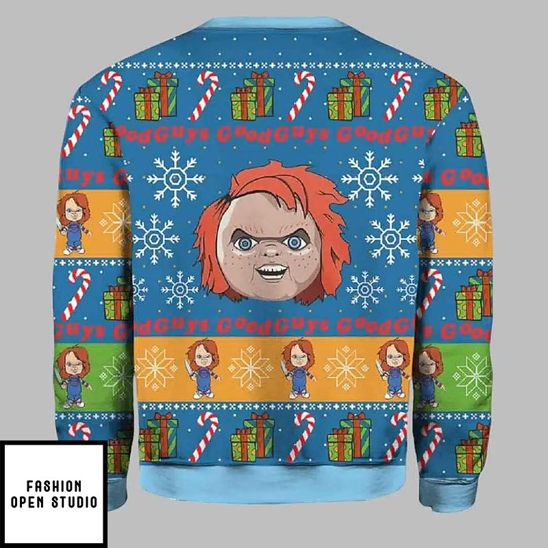 Celebrate the holiday season with Chucky Good Guys Ugly Christmas Sweater from our unique ugly sweatshirt collection! This is great for people who struggle to pick between Halloween and Christmas or who like to mix up the holidays. This unique design takes the best parts of both worlds and makes a piece that will get people talking and stand out. Get ready for this masterpiece to turn heads and make people happy!