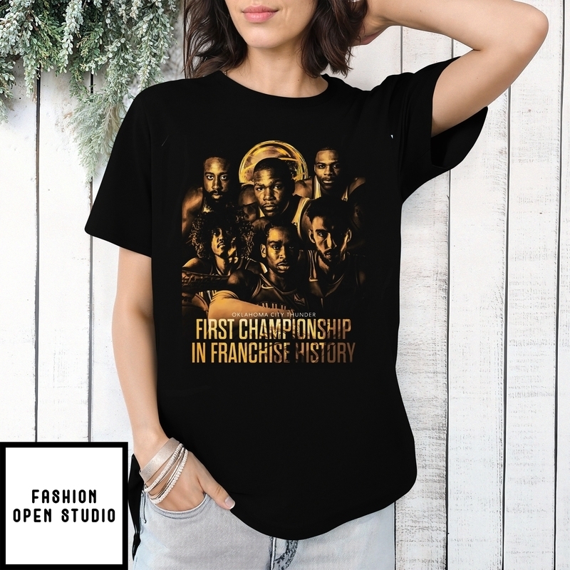 Congrats Oklahoma City Thunder First Championship In Franchise History Nba Finals 2025 T-Shirt has gone viral on the Internet. Discover the t-shirt below!