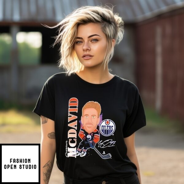 Connor Mcdavid Edmonton Oilers Caricature Player Signature T-Shirt