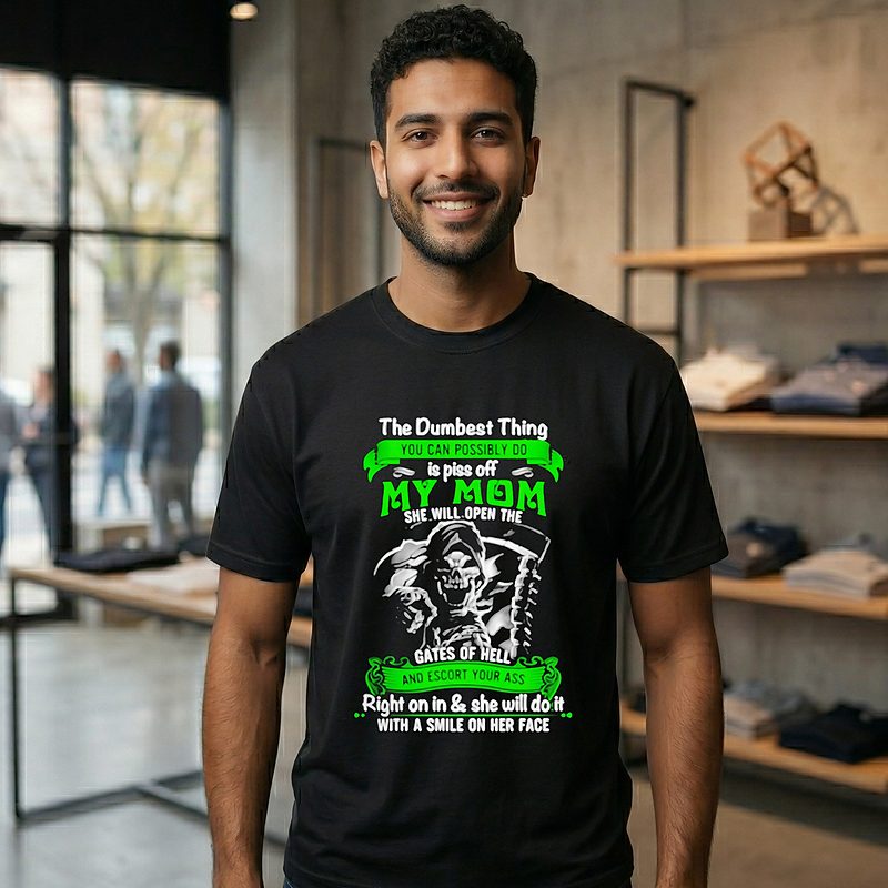 Be the first to review “Death The Dumbest Thing You Can Possibly Do Is Piss Of My Mom She Will Open The Gates Of Hell T-Shirt” Cancel reply