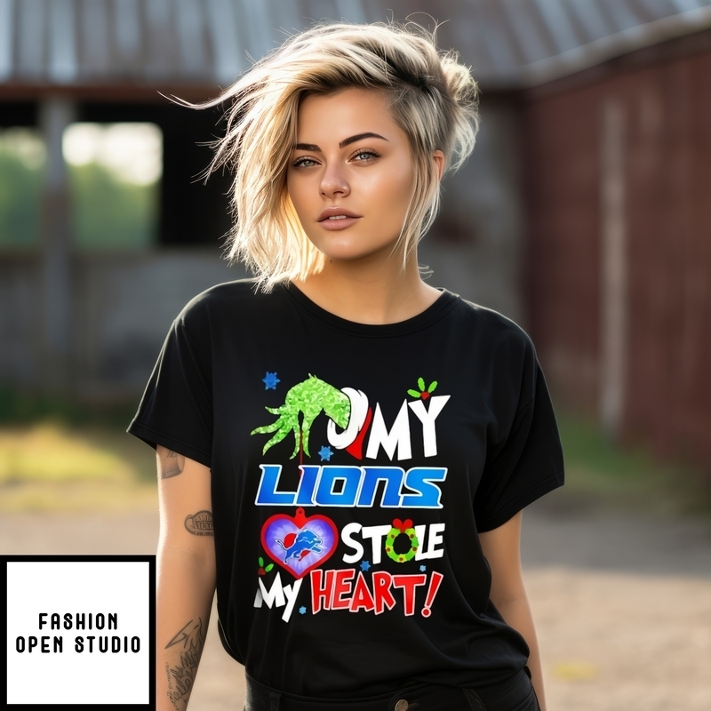 Detroit Lions My Lions Stole My Heart Grinch Hand Christmas T-Shirt