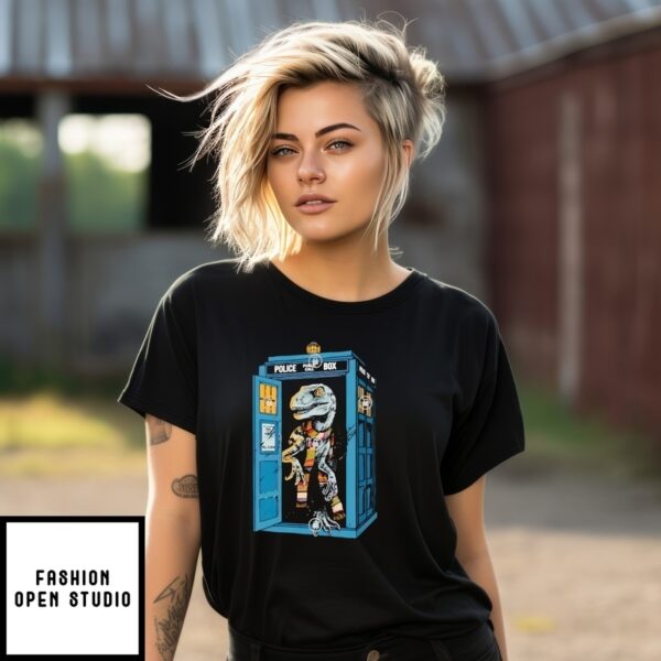 Dinosaur A Scarf-Wearing Velociraptor In The Tardis T-Shirt
