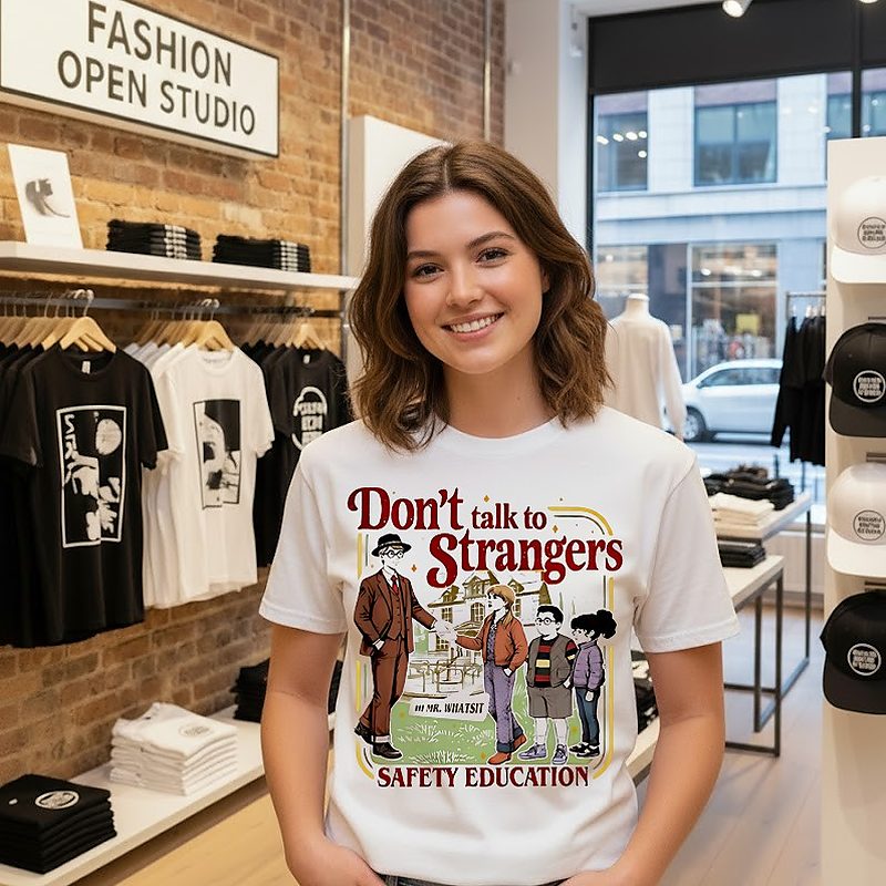 Be the first to review “Don’t Talk To Strangers Mr. Whatsit Safety Education Stranger Things 5 T-Shirt” Cancel reply
