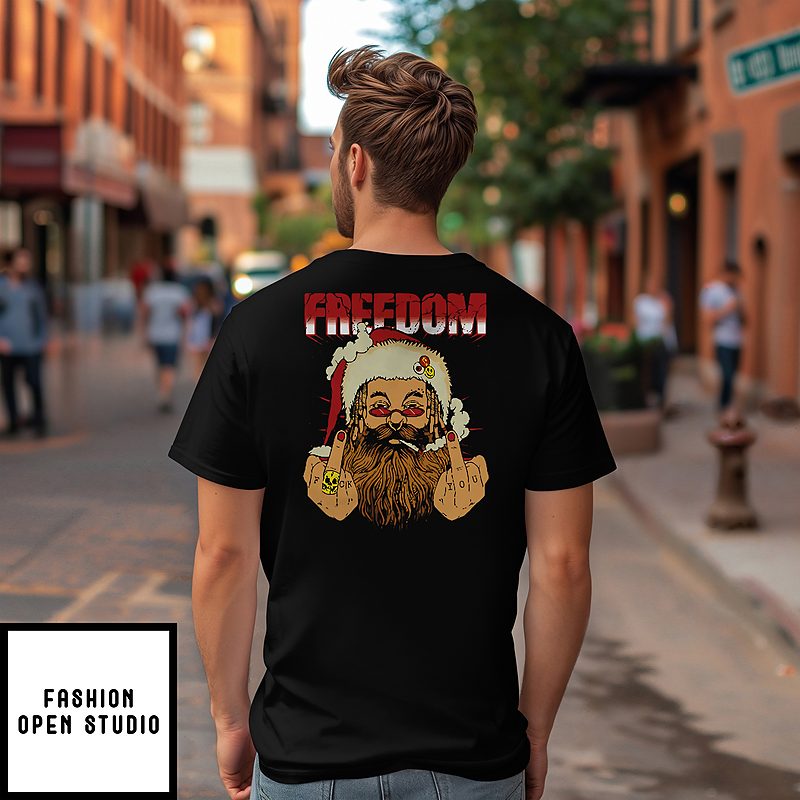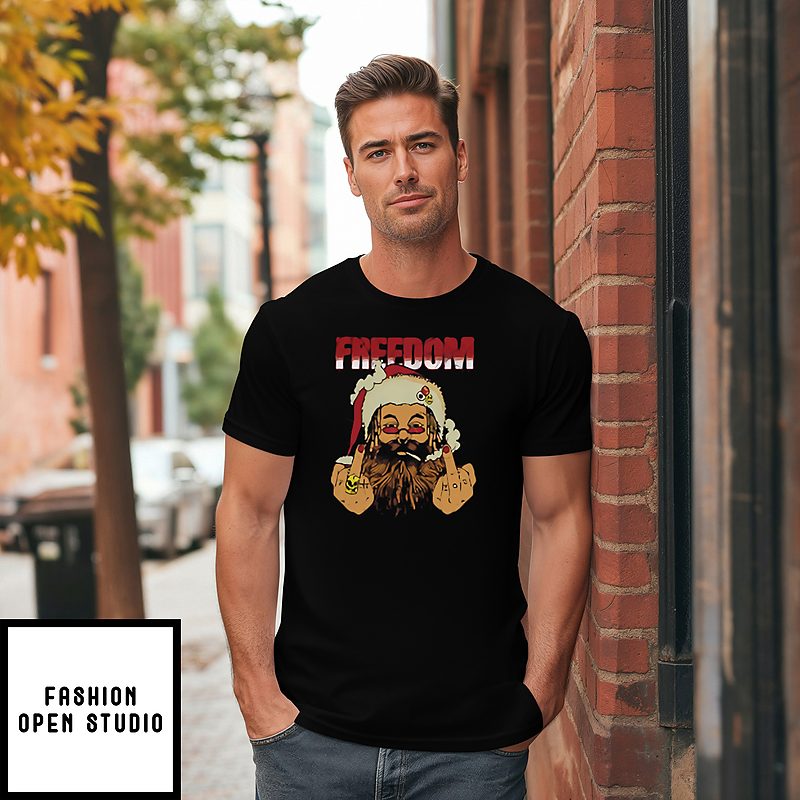 Freedom Defiant Santa Claus Middle Finger Christmas T-Shirt
