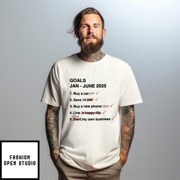 Goals Jan June 2025 List Buy A Car Pet Save 10 Buy A New Phone Case Live Mind My Own Business T-Shirt