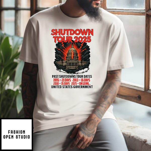 Government Shutdown Tour 2025 Past Shutdowns Tour Dates 1995-21 Days 2013-16 Days 2018-35 Days 2025-On Going T-Shirt