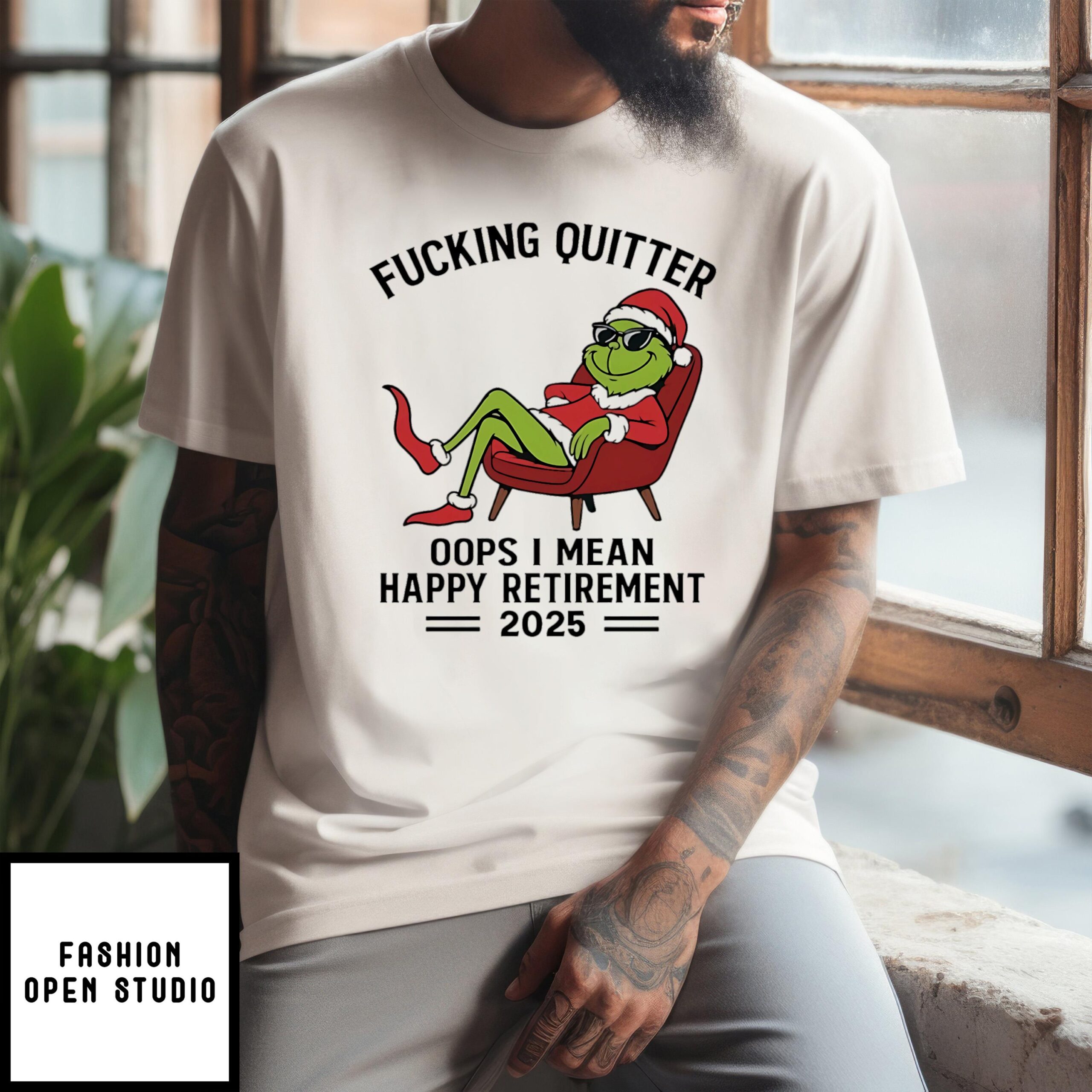 Grinch Santa Fucking Quitter Oops I Mean Happy Retirement 2025 T-Shirt