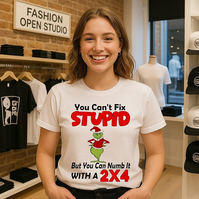Grinch You Can’t Fix Stupid But You Can Numb It With A 2×4 Christmas T-Shirt