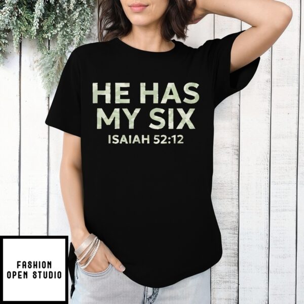 Be the first to review “He Has My Six Isaiah 52 12 T-Shirt” Cancel reply