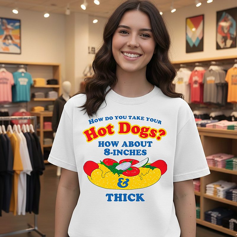 Be the first to review “How Do You Take Your Hot Dogs How About 8-Inches Thick T-Shirt” Cancel reply