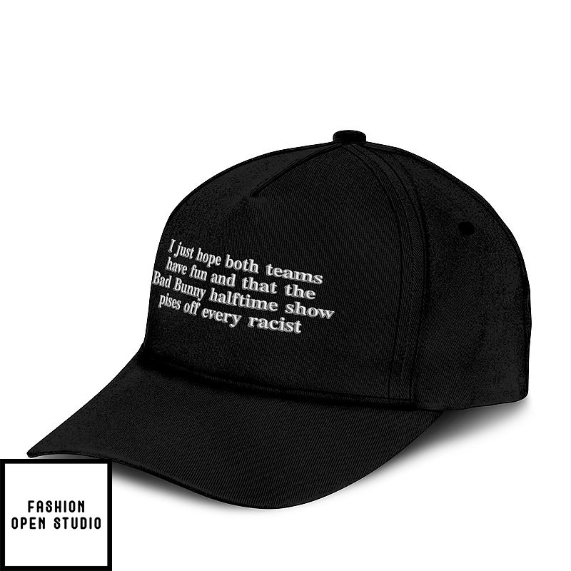Looking for a stylish, on-trend hat to elevate your look? The I Just Hope Both Teams Have Fun And That The Bad Bunny Halftime Show Pisses Off Every Racist Hat is just what you need! Find your perfect match in our hat collection!