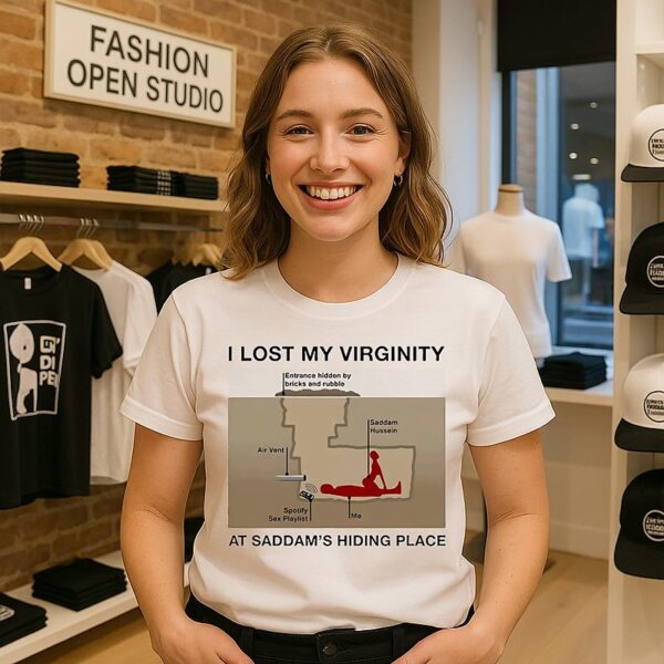 I Lost My Virginity At Saddam Hussein Hiding Place I Lost My Virginity At Saddam Hussein Hiding Place Meme T-Shirt has gone viral on the Internet. Discover the t-shirt below!