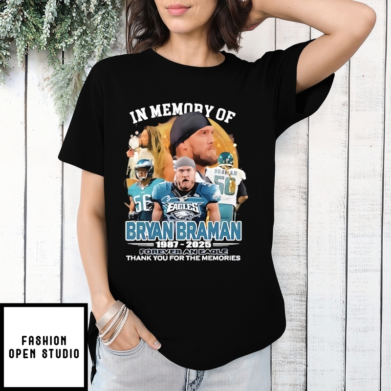 In Memory Of Bryan Braman Eagles 1987-2025 Forever An Eagle Thank You For The Memories T-Shirt has gone viral on the Internet. Discover the t-shirt below!