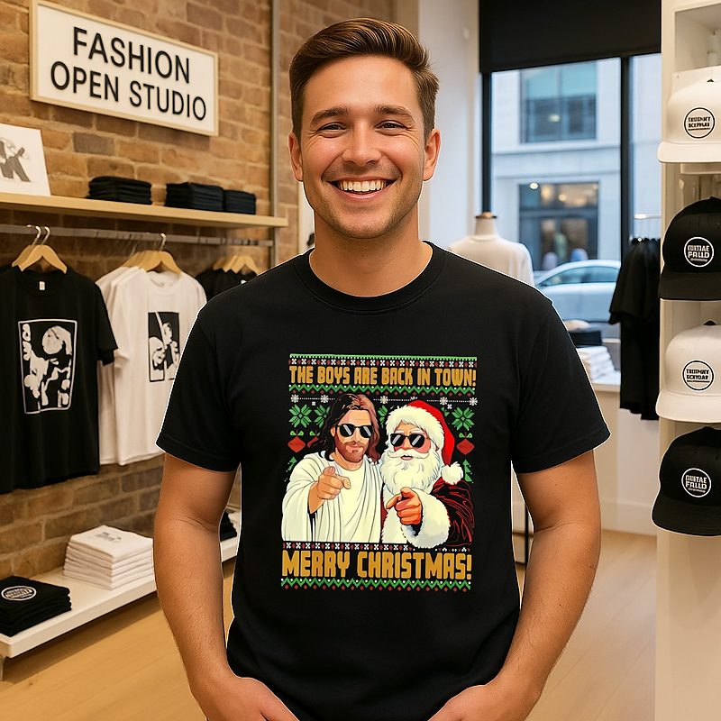 Be the first to review “Jesus Santa The Boys Are Back In Town Merry Christmas T-Shirt” Cancel reply