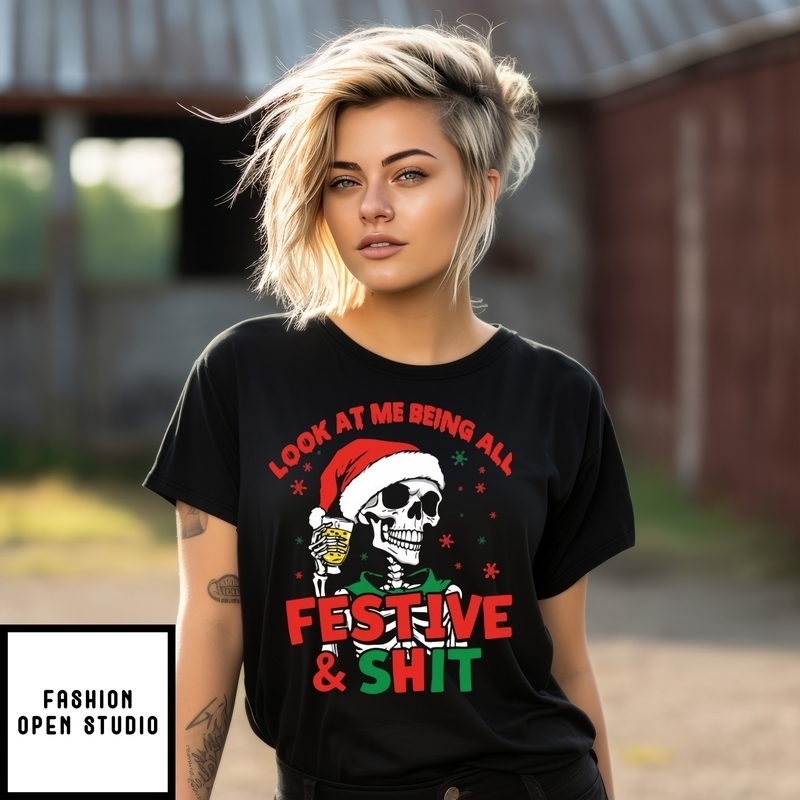 Look At Me Being All Festive And Shit Christmas Skeleton T-Shirt