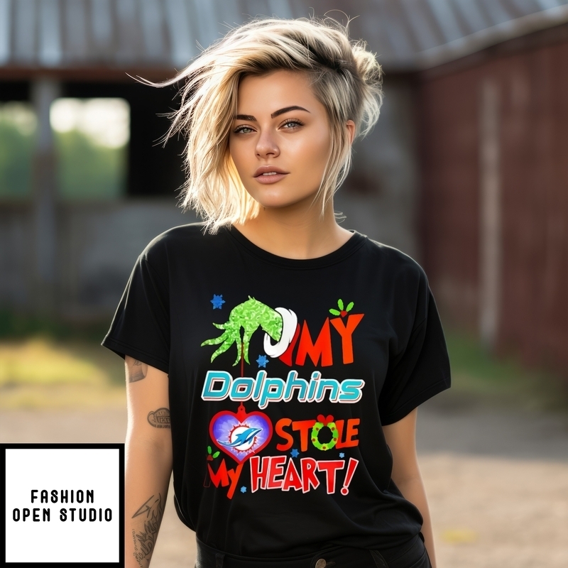 Miami Dolphins My Dolphins Stole My Heart Grinch Hand Christmas T-Shirt