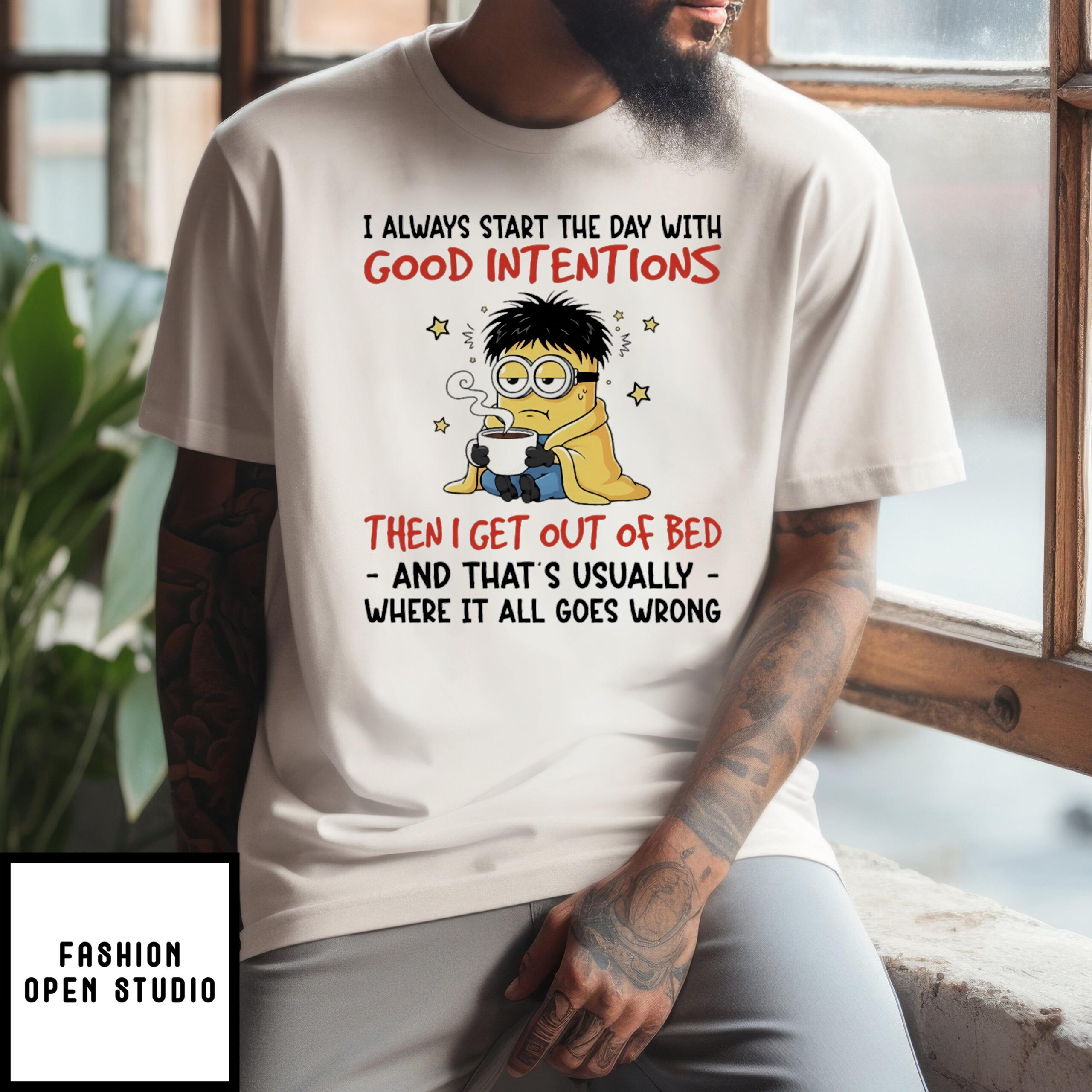 Minions I Always Start The Day With Good Intentions Then I Get Out Of Bed And That’S Usually Where It All Goes Wrong T-Shirt has gone viral on the Internet. Discover the t-shirt below!