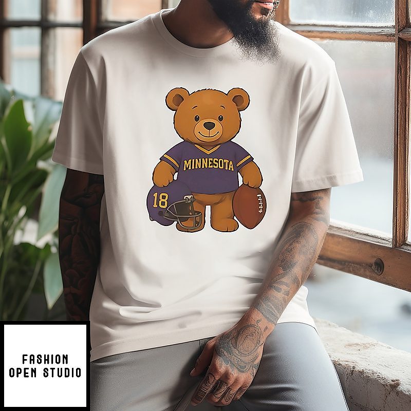 Minnesota Vikings Teddy Bear Number 18 Cartoon T-Shirt