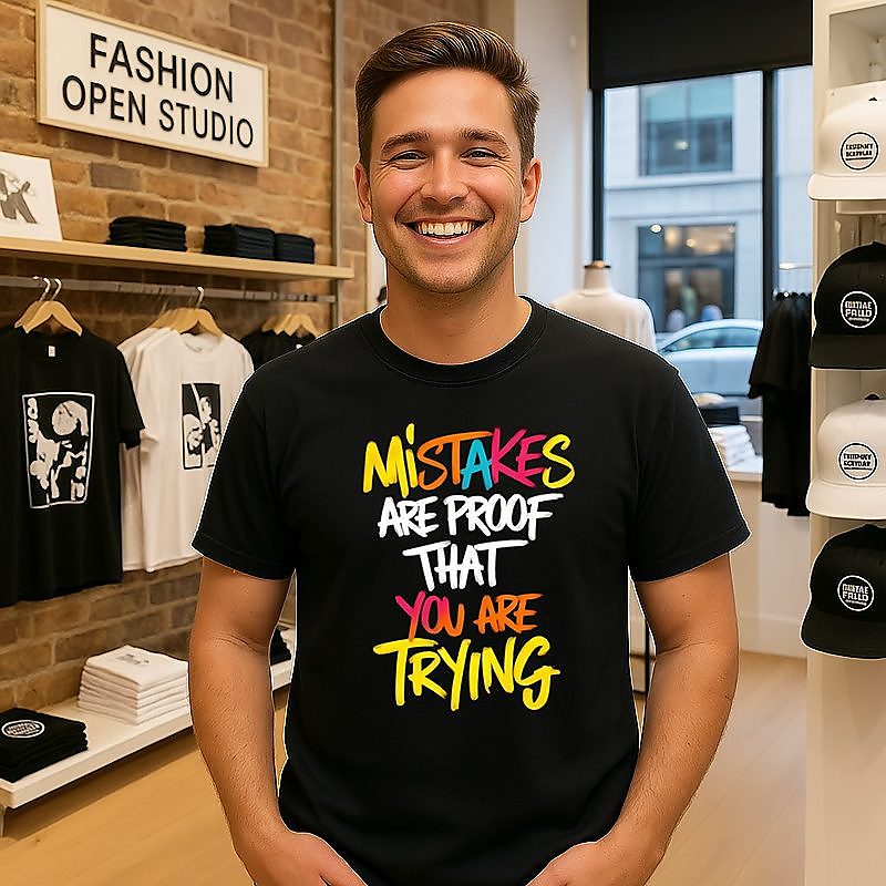 Be the first to review “Mistakes Are Proof That You Are Trying Text Colorful T-Shirt” Cancel reply