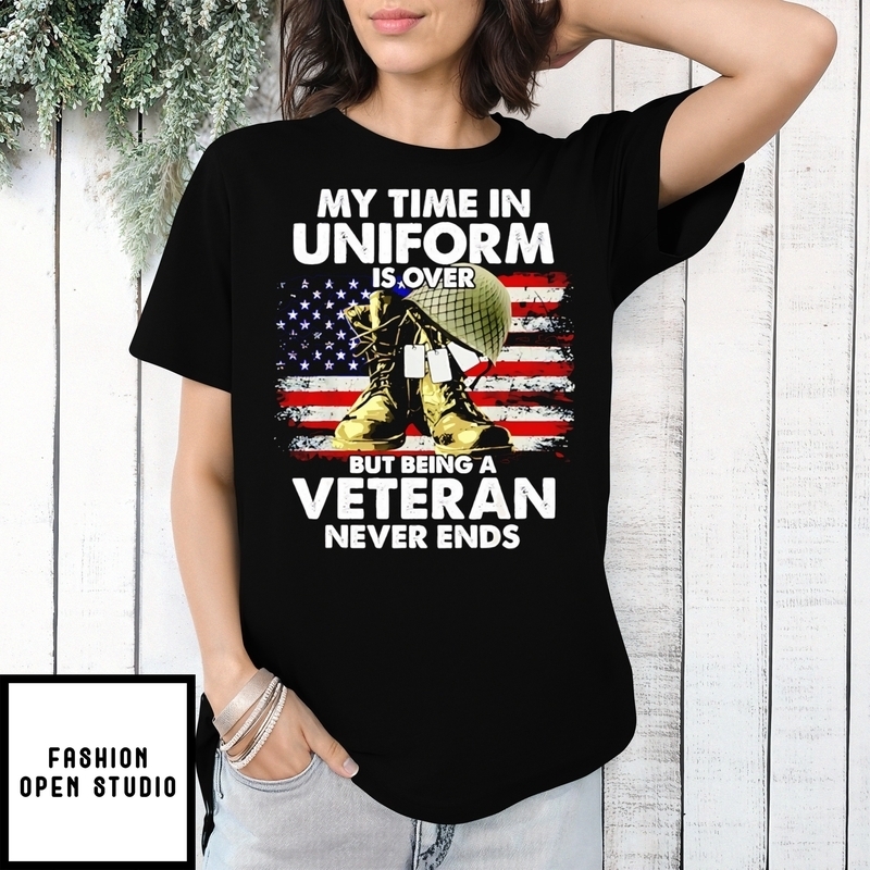 My Time In Uniform Is Over But Being A Veteran Never Ends Flag T-Shirt