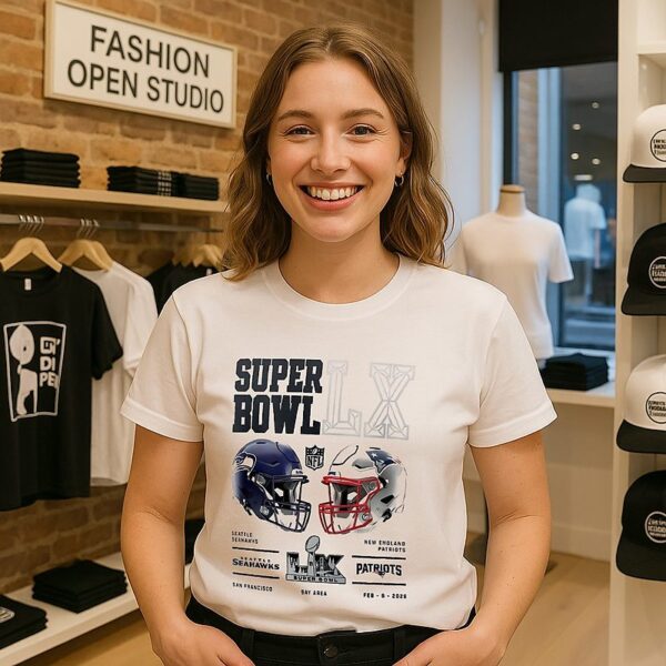Be the first to review “New England Patriots Vs. Seattle Seahawks Super Bowl Lx Dueling T-Shirt” Cancel reply