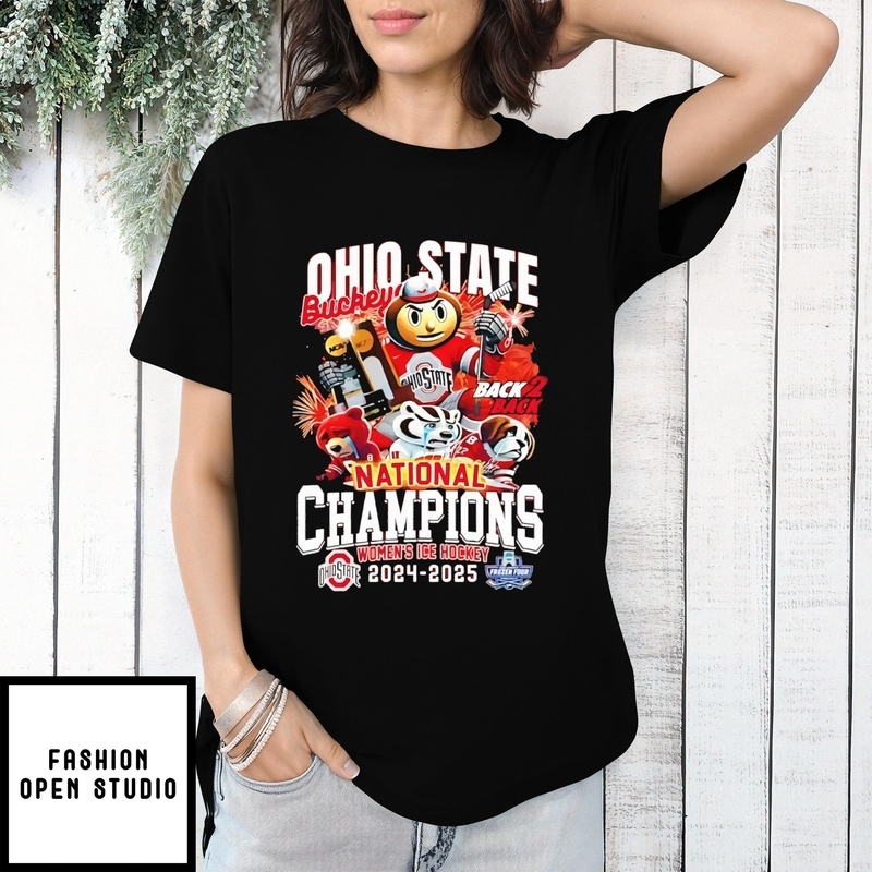 Ohio State Buckeyes Back To Back National Champions Ice Hockey 2024 2025 T-Shirt