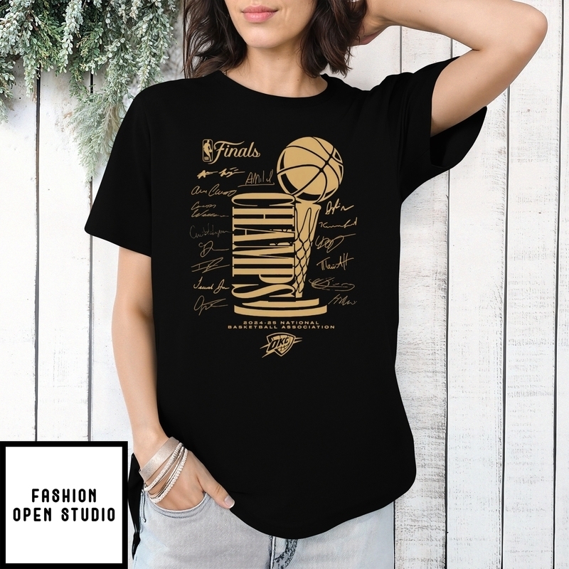 Oklahoma City Thunder 2025 Nba Finals Champions Trophy Roster Signature T-Shirt