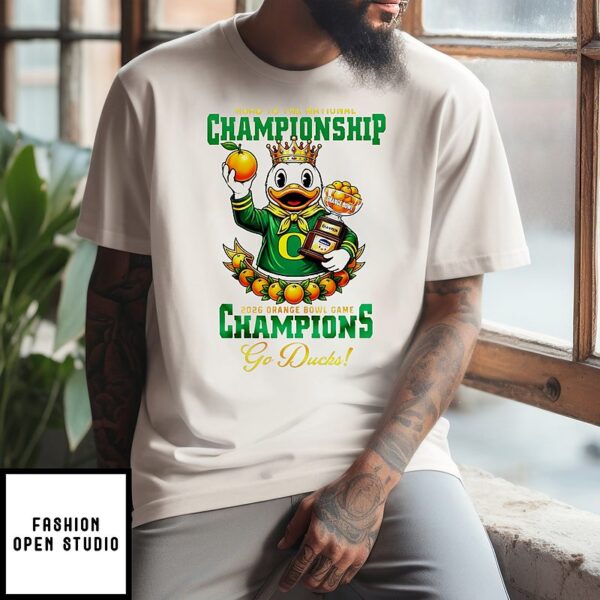Oregon Ducks NCAA Orange Bowl Game Champions 2026 Mascot T-Shirt