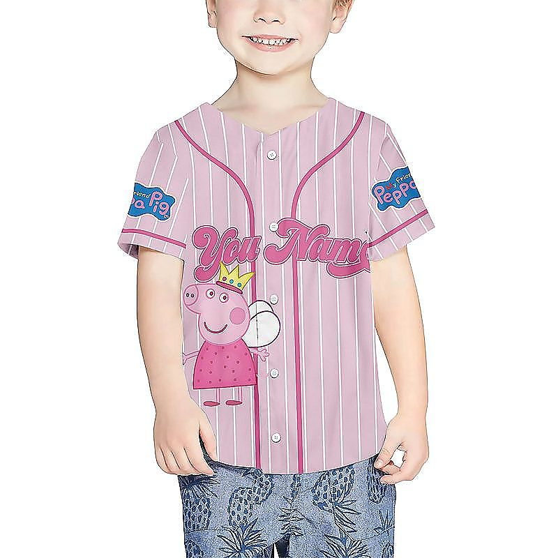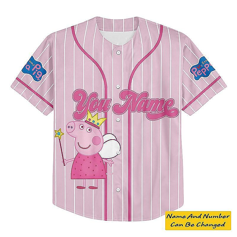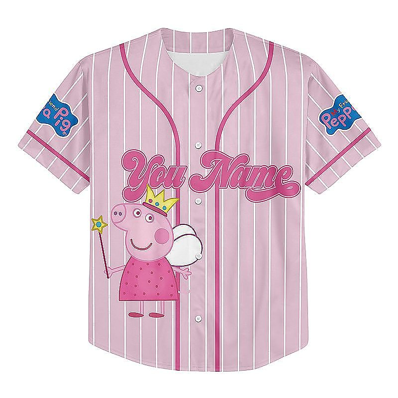 Personalized Peppa Pig Baseball Jersey is a bold, game-day ready baseball jersey designed for comfort and standout style. With its classic button-up look and breathable feel, it’s perfect for casual wear, team vibes, or gifting for any baseball fan. Explore our baseball jersey collection and check out the baseball jersey details and size guide below!