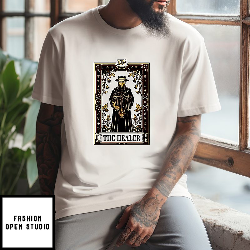 Plague Doctor The Healer The Black Death Xiv Century Tarot Card Retro T-Shirt