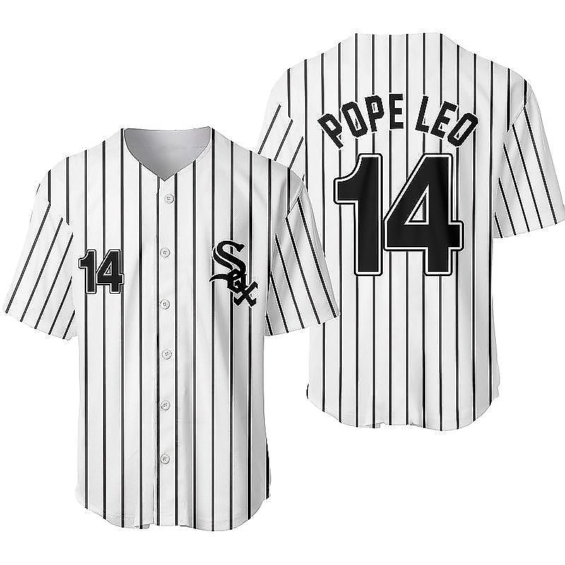 Pope Leo 14 White Sox Baseball Jersey is a bold, game-day ready baseball jersey designed for comfort and standout style. With its classic button-up look and breathable feel, it’s perfect for casual wear, team vibes, or gifting for any baseball fan. Explore our baseball jersey collection and check out the baseball jersey details and size guide below!