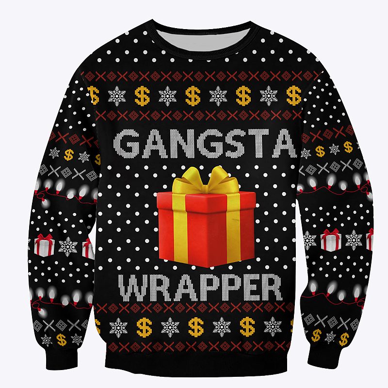 Celebrate the holiday season with Queens Coach Grant Leonard Gangsta Wrapper Christmas Sweatshirt from our unique ugly sweatshirt collection! This is great for people who struggle to pick between Halloween and Christmas or who like to mix up the holidays. This unique design takes the best parts of both worlds and makes a piece that will get people talking and stand out. Get ready for this masterpiece to turn heads and make people happy!